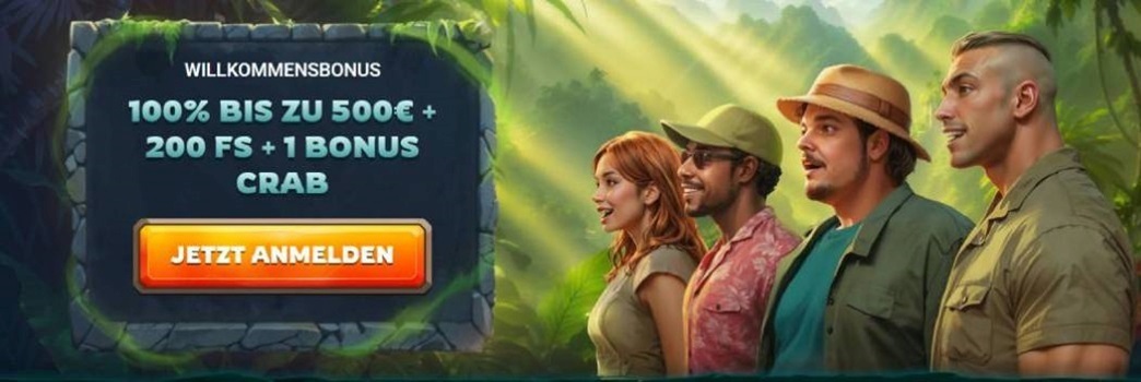 100% bis zu 500 € + 200 FS + 1 Bonus Crab